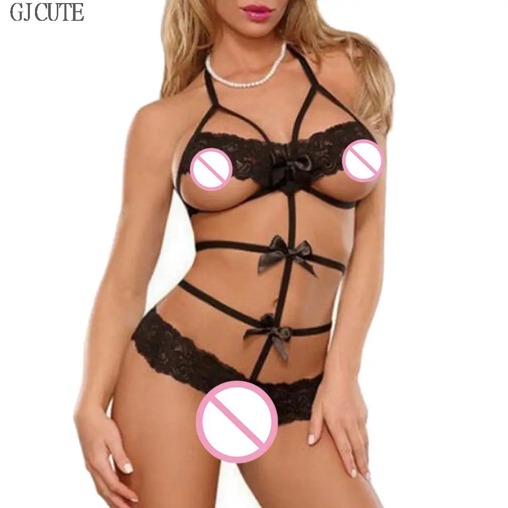 Sexy Lingerie For Women Lace Transparent Underwear Set Erotic Costumes Deep V Open Bra Crotchless Bodysuit Teddy Lingerie Sets