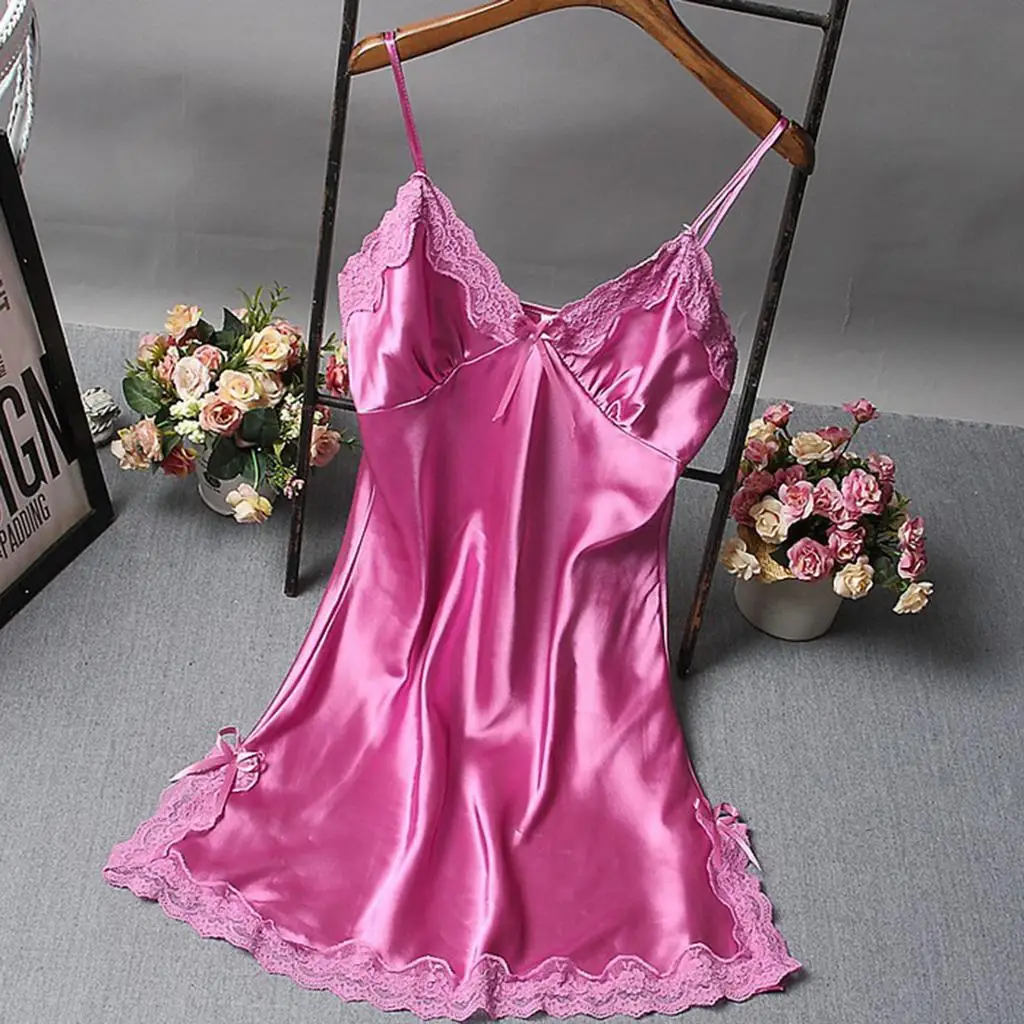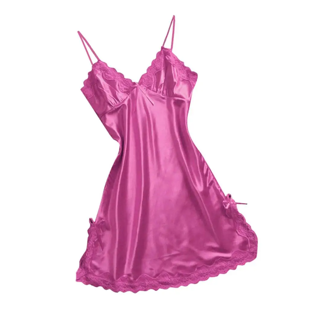 Limited Price for Womens Sexy Lingerie Sleepwear Satin Bowknot Lace Babydoll Slip Dress S 2XL